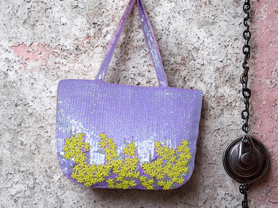 Designer Handmade Luxury Women's Glitter Sequin Casual Tote Bags Floral Pattern Cross-Body Strap Eco-Friendly Party Wedding