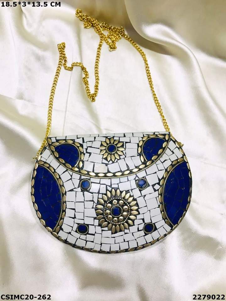 Designer Handmade Metal Mosaic Ladies Clutch Bag Fashion Leather Shoulder Bag Stone Pattern Frame Elegant Evening Use Box Shell