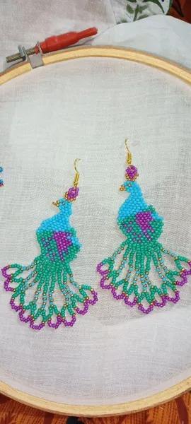 Designer Handmade Women's Multi-Color Crocheted Seed Bead Drop Earrings Fashion Christmas Artificial Embroidery Crafts