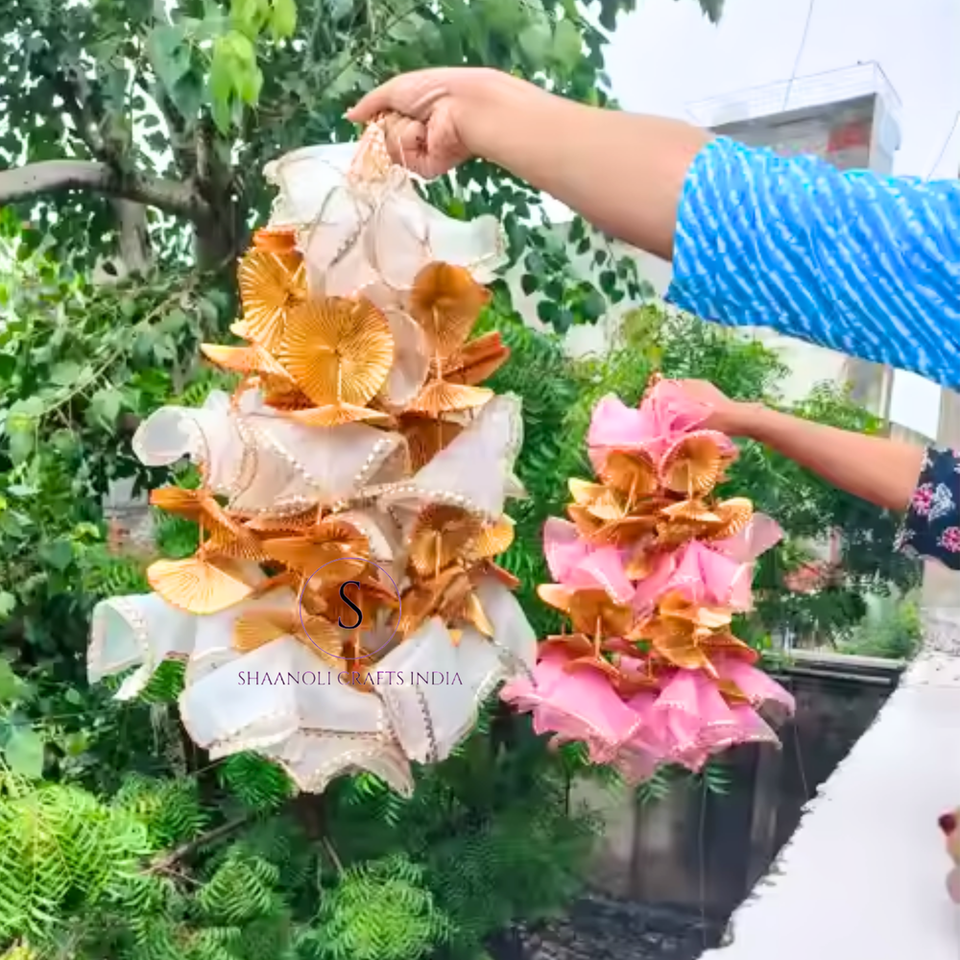 Designer Handmade Strings of Net Fabric Colorful Tassel With Gota Lace Flower ( Single String ) Tassels for Weddings Home Decor