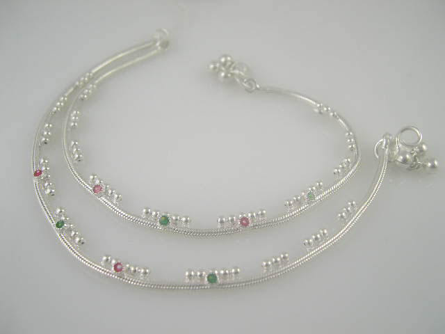 Designer Handmade Stylish 925 Sterling Silver Anklets With Colorful Gemstones Jewellery for Women and Girls Wear Anklet