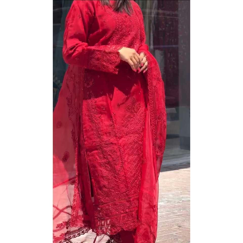 Designer Heavy Faux Georgette Top Bottom & Dupatta Set Party Wear Prom Dresses Look