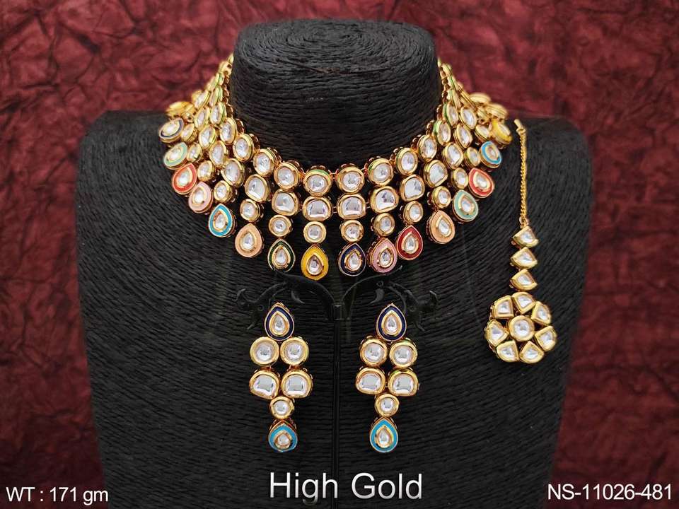 Designer High Gold Plated Fancy Style Party Wear Beautiful Kundan Jewellery Choker Necklace Set