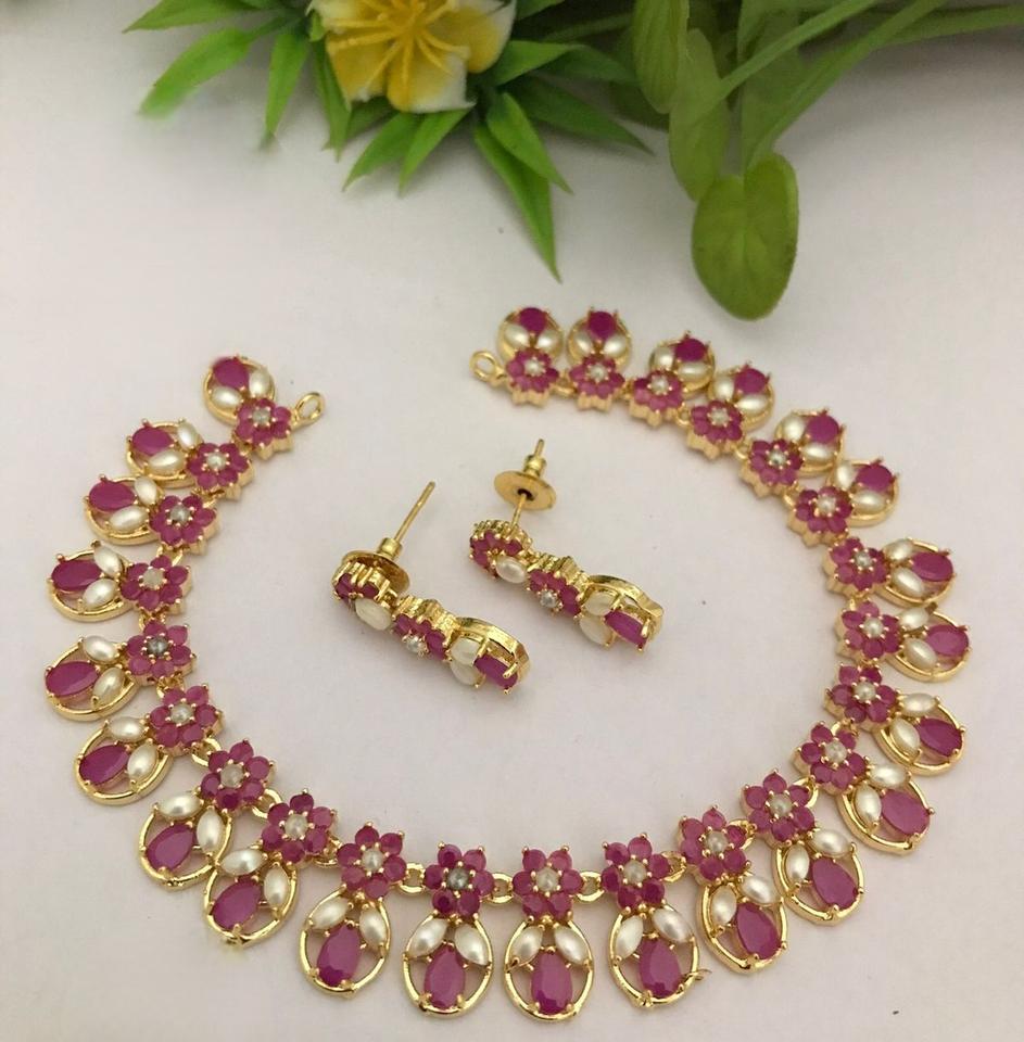 Designer High Quality Silver Plated Zircon Necklace Set with Earrings for Wedding Classic Wear Collection Women