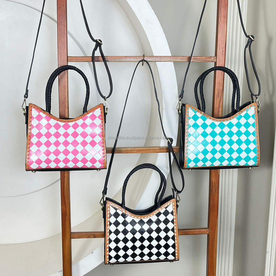 Product name:Hand Tooled Checkered Leather Tote Bag