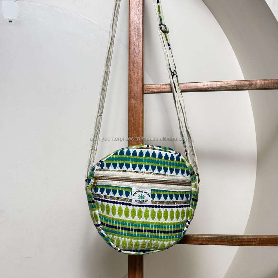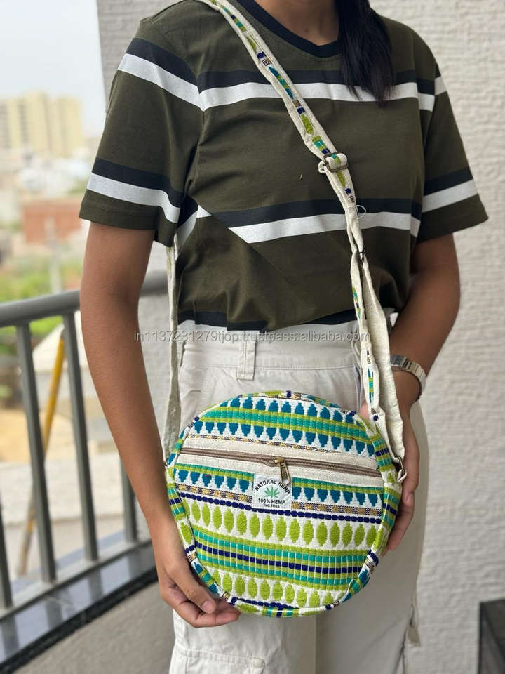 Designer Himalayan Round Hemp Crossbody Bag Handmade Eco-Friendly Sling Bag with Zipper Boho Travel Shoulder Bag for Women & Men