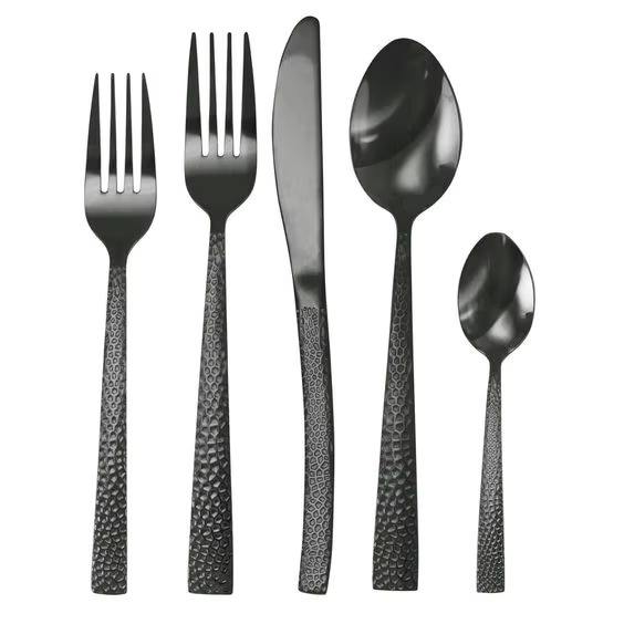 Hot Selling Designer Black Matte Cutlery Set High Quality Hammered Handle Flatware 4 Pcs Sustainable Black Matte Cutlery Set