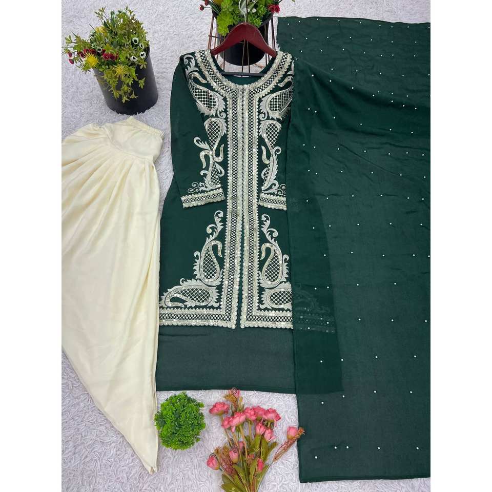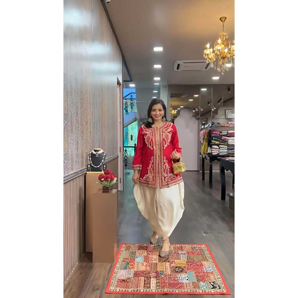 Designer Indian & Pakistani Clothing Party Wear Top Dhoti Salwar Dupatta Ensemble