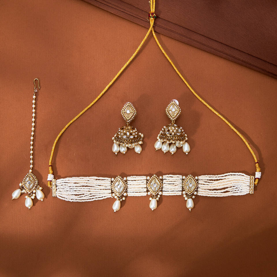 Set include:1 Necklace, 1 Maang tikka & 1 Pair of Earring