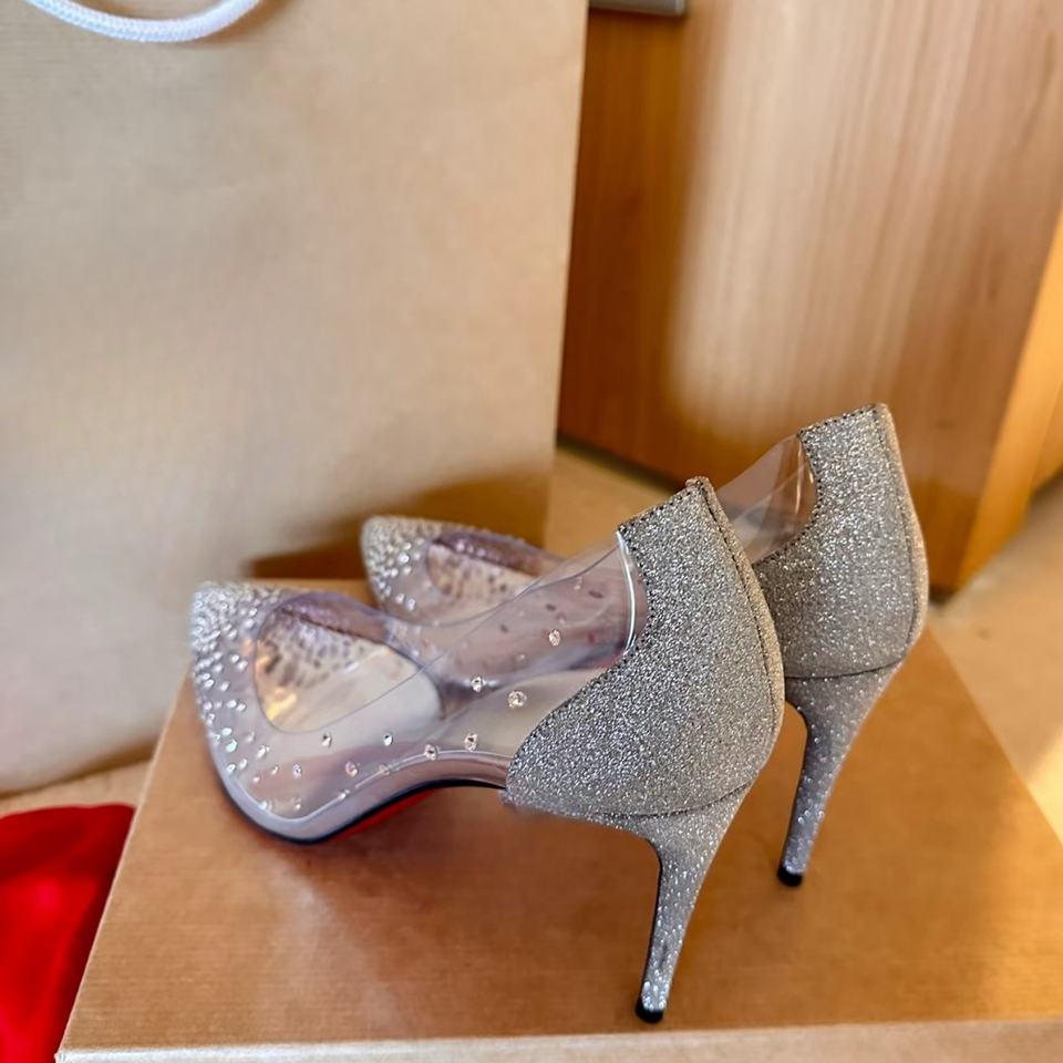 Designer Inspired Crystal Rhinestone Transparent PVC Pointed Toe High Heels Women Luxury Party Wedding Pumps