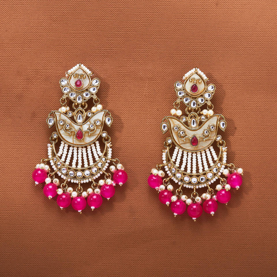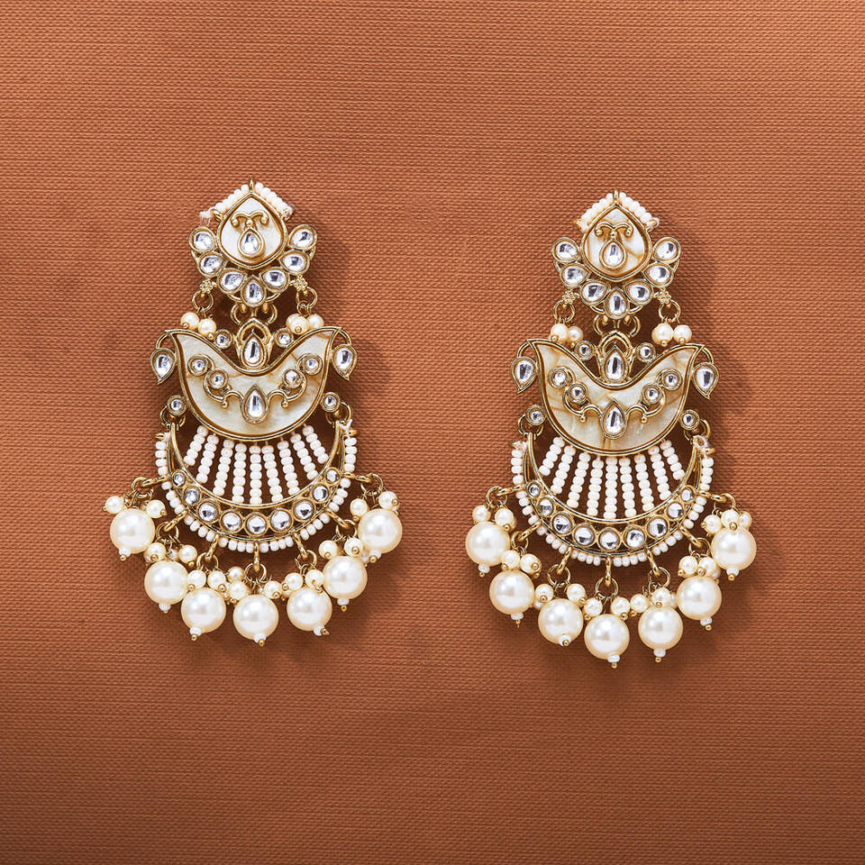 Designer Inspired Indo Western Fashion Chandelier Earrings Famous for their Mother of Pearl & Mehndi Plating