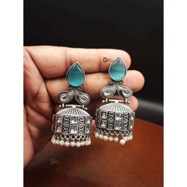 Designer Jaipur's Handmade Jhumka German Silver Oxidised Stud Earrings for Women for Casual Party Wear for Women