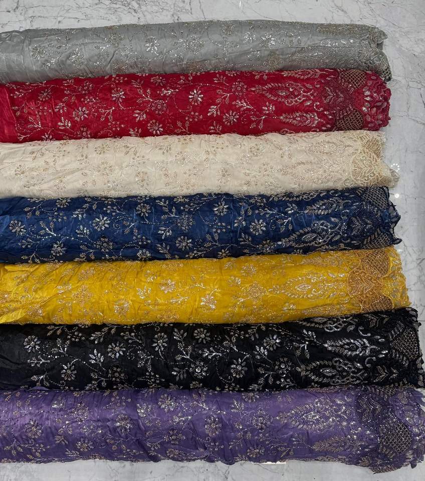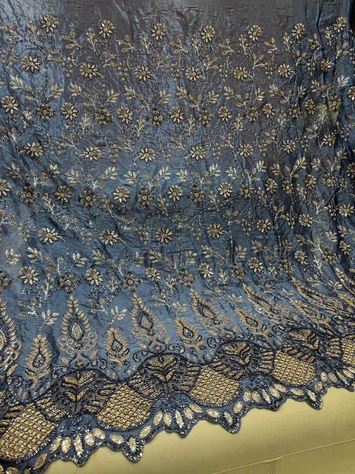 Designer Laser Cutwork Beads Fabric for Bridal Wear Couture Evening Gowns and Lehengas Beautiful Embellished Textile