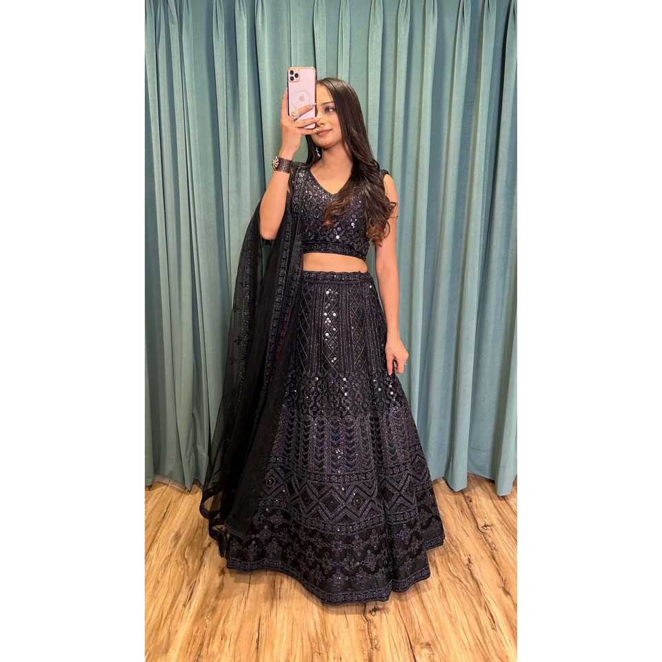 FB Designer Black Lehenga Choli Size M for Parties Dori & Sequence Work Elegant Indian & Pakistani Clothing