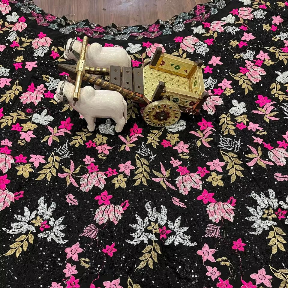Designer Lehenga With 4 Meter Flared Double Sequins Work With Can-Can and Canvas Layers