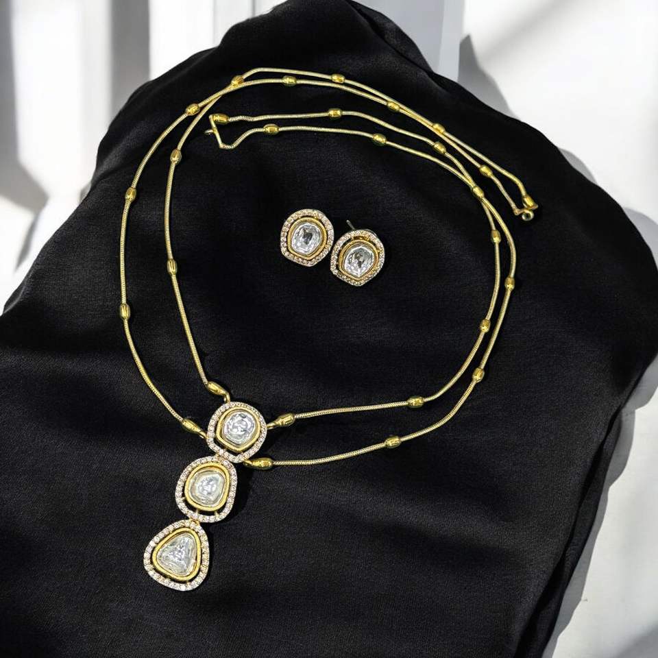 Designer Long Kundan Necklace Set For Women & Girls Ethnic Indian Jewelry Ideal For Casual & Office Wear Party Wear Necklace Set