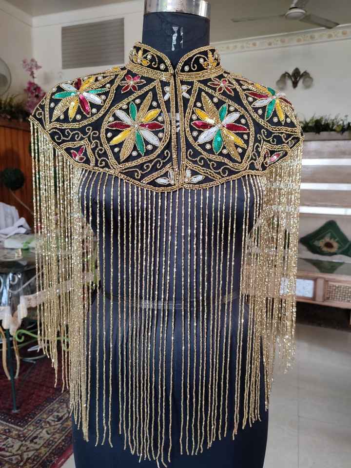 Description:Very Heavy Handembroidery and shiny handbeaded tassels downside