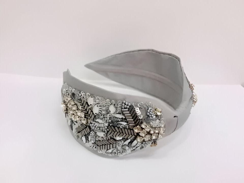 Designer Luxury Handmade Grey Padded Headband Metallic Embroidery Women's Bridal Boutique Partywear Hair Accessory Wholesale