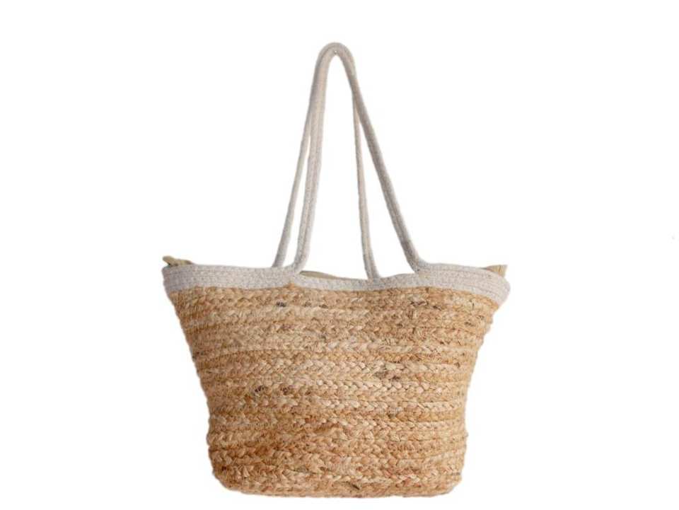 Designer Luxury Jute Tote Bag for Women Long Handle Beach Shopping Bags in Braided Jute Cotton Canvas with Custom Logo-Wholesale