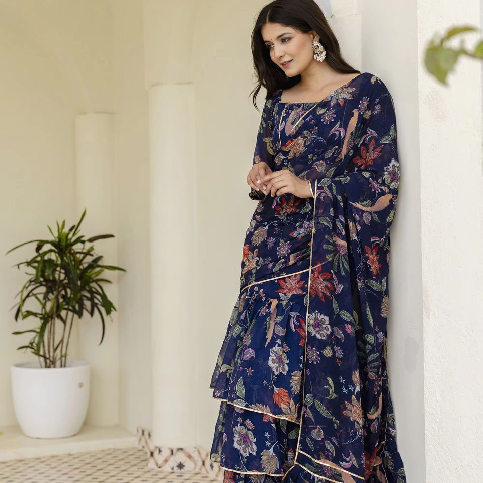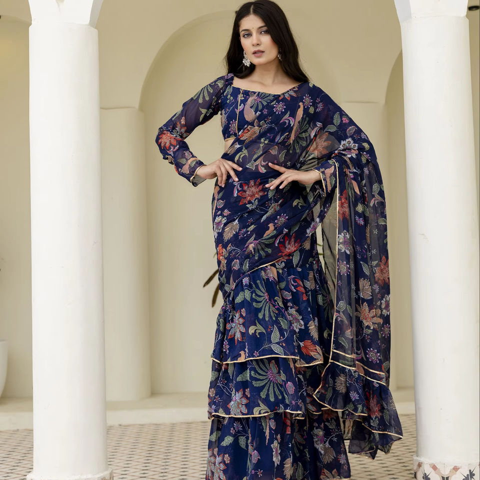 SAREE LENGTH:3 Layer Ruffle Saree Waist To Floor Length : 41-42 Inches