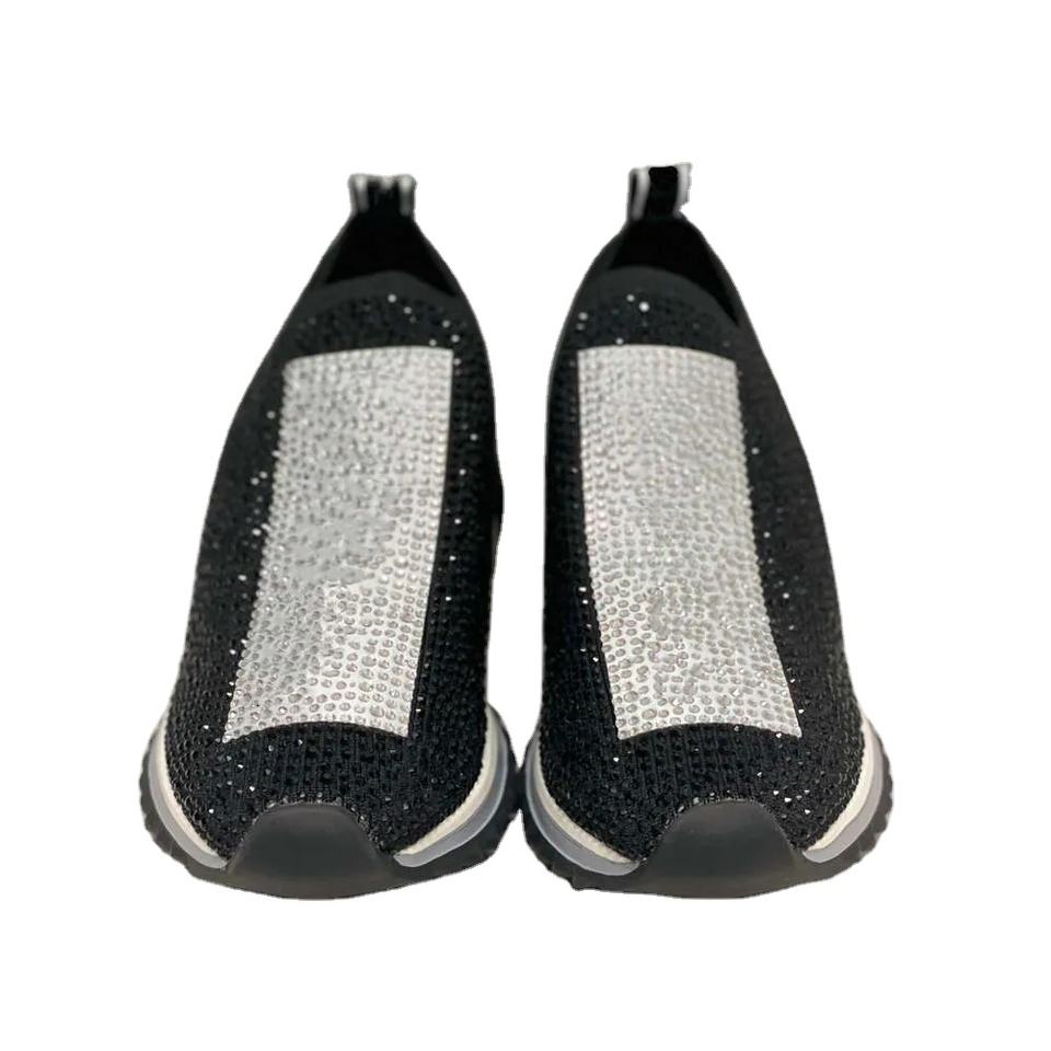 Designer AHMED ABDI Sporty Men's Sneakers Speed Trainers Black White Glitter Flat Shoes with Rhinestones Crystals Box NO442