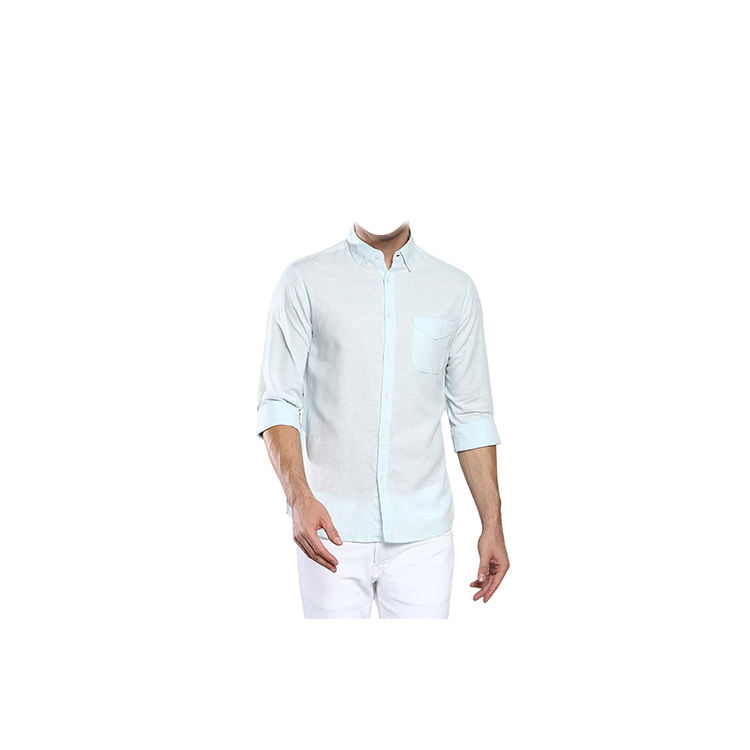 Designer Men's Cotton Chambray Safari Style Slim Fit Full Sleeves Turn-down Collar Button Breathable Eco-Friendly Vacation