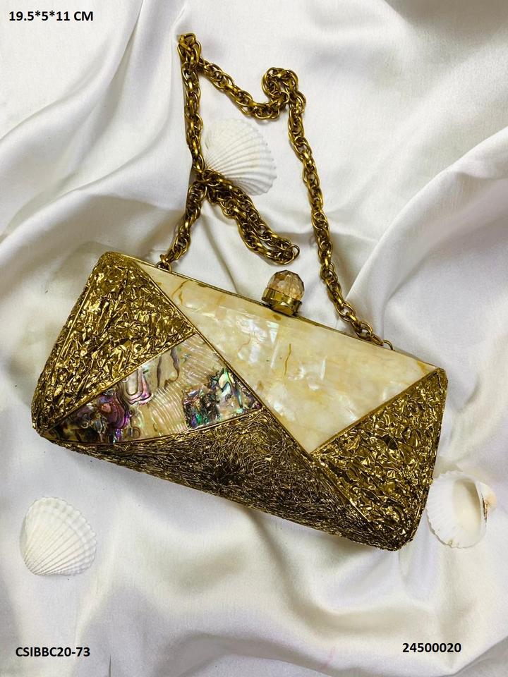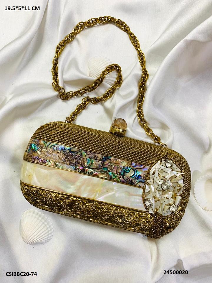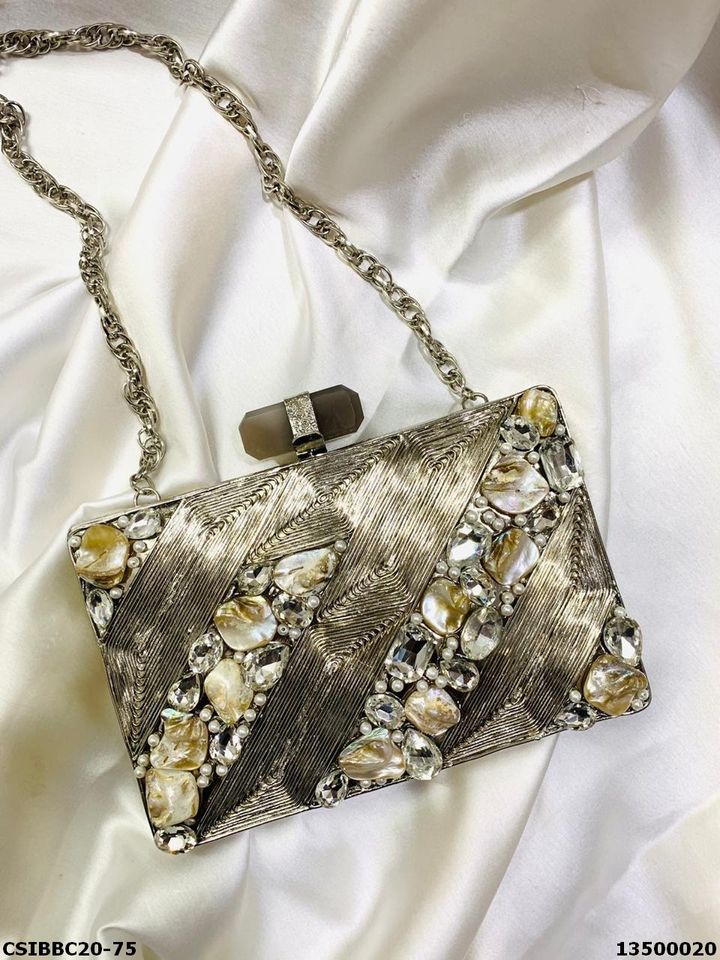 Designer Metal MOP Clutches for Handbags Fashionable Brass Party and Wedding Bag with Pearl Decoration and Stone Pattern