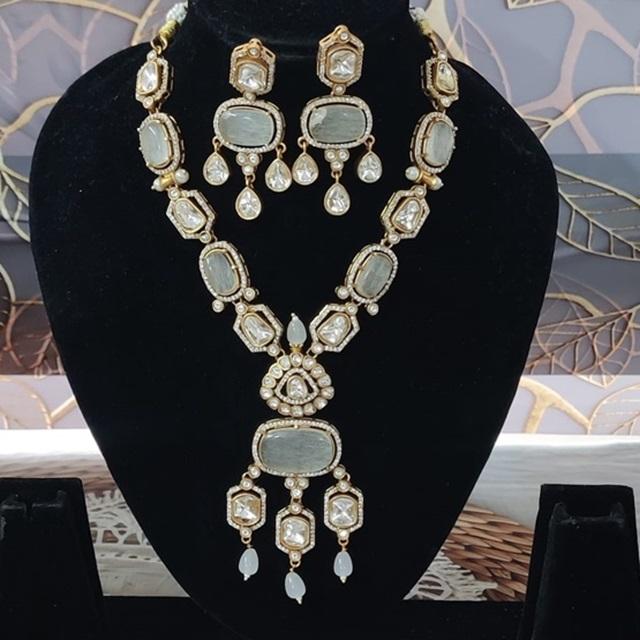 Designer Moissanite Polki with Monalisa stone Necklace Set Earrings for Women Gold Plated Designer Jewelry for Wedding and Party