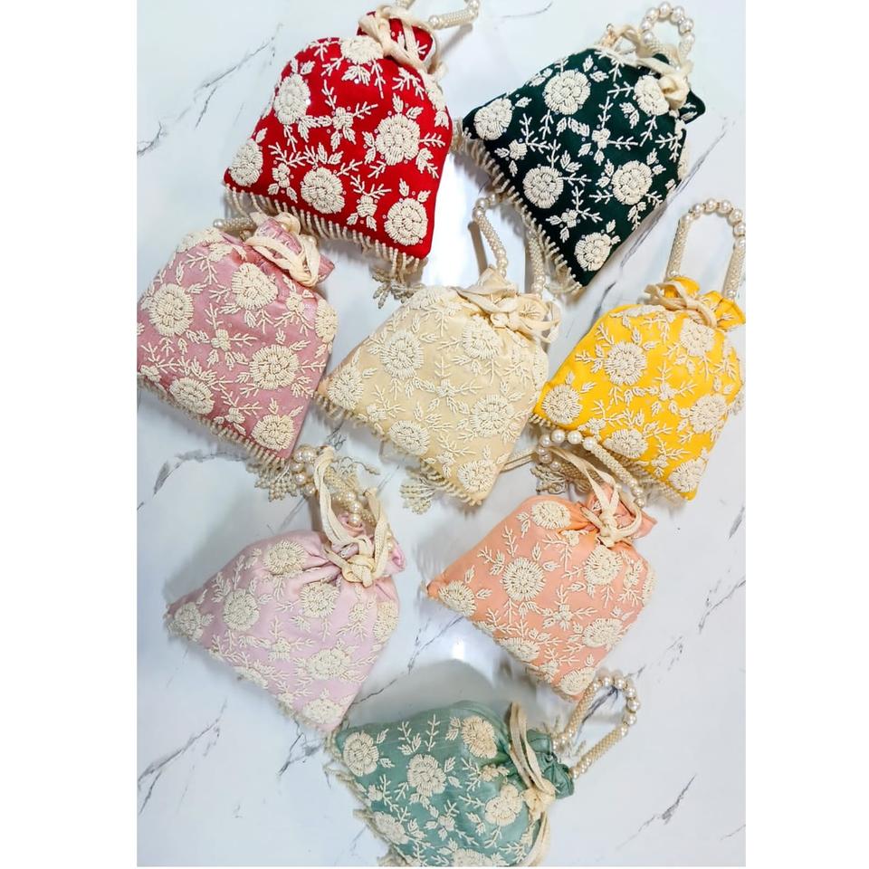 Designer Women's Mini Potli Bag Multi-Color Pearl Embroidery High Quality Drawstring Closure Wedding Party Gift Fashion Indian