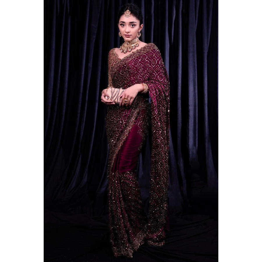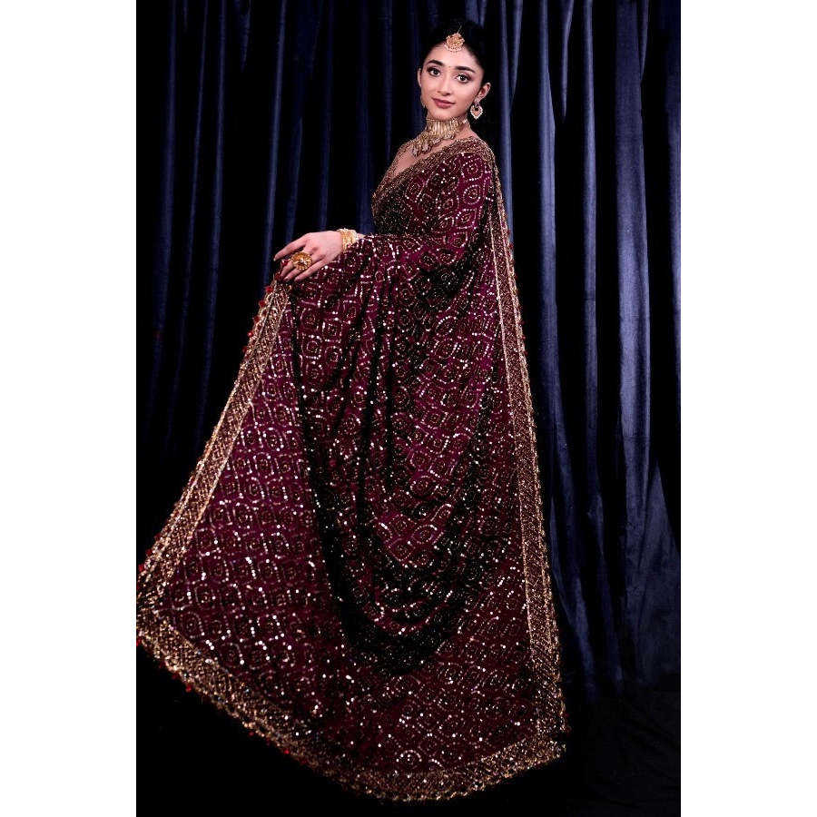 Designer Multi-Tread Embroidery Saree with Sequins Work Elegant Dresses for Women