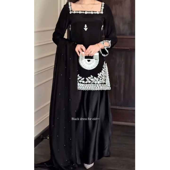 Designer Natural Crepe Sequence Thread Work Top Plain Palazzo Tibby Silk Moti Work Dupatta Boutique Quality Ladies Suit