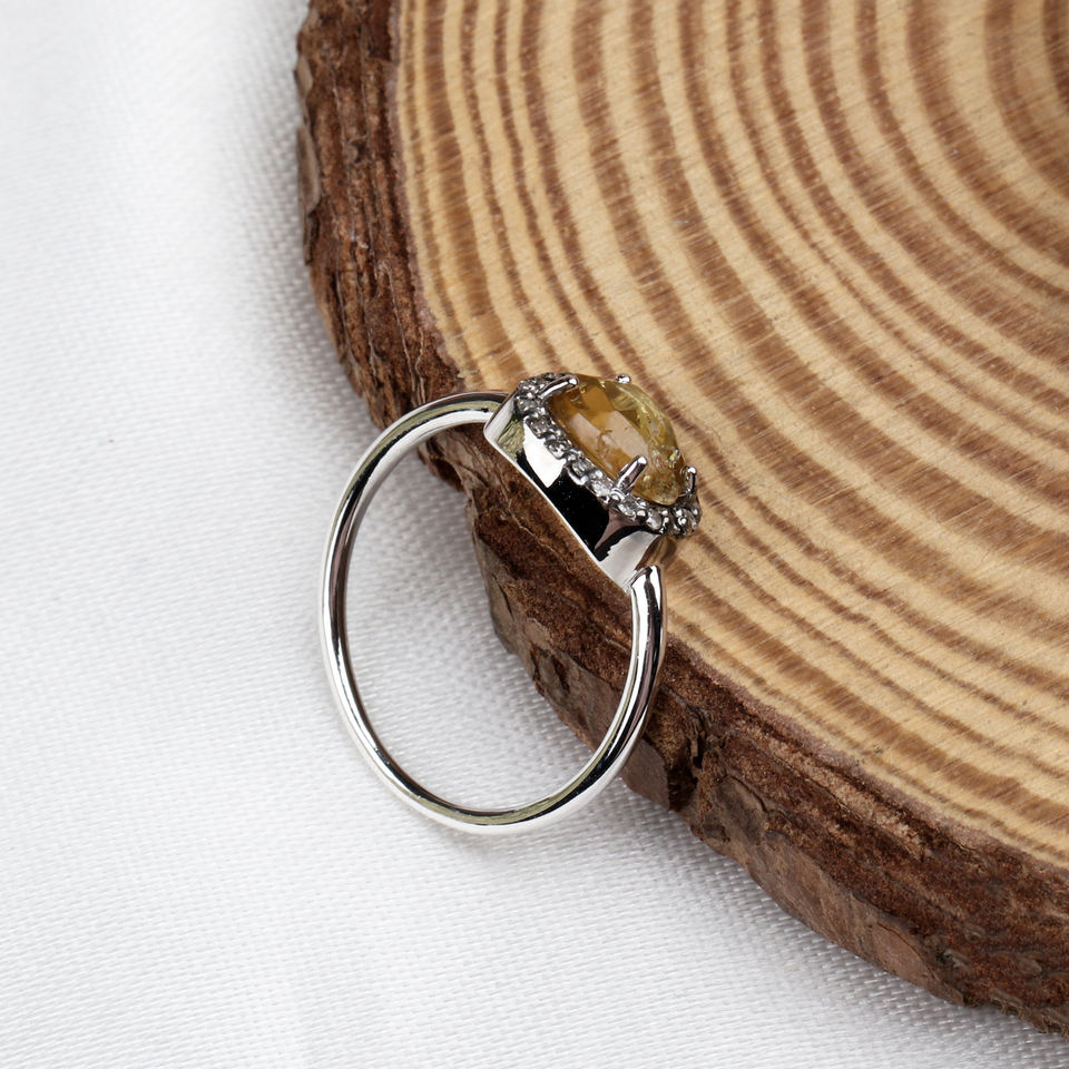 Item Name:Yellow Citrine Gemstone & Diamond 925 Silver Ring