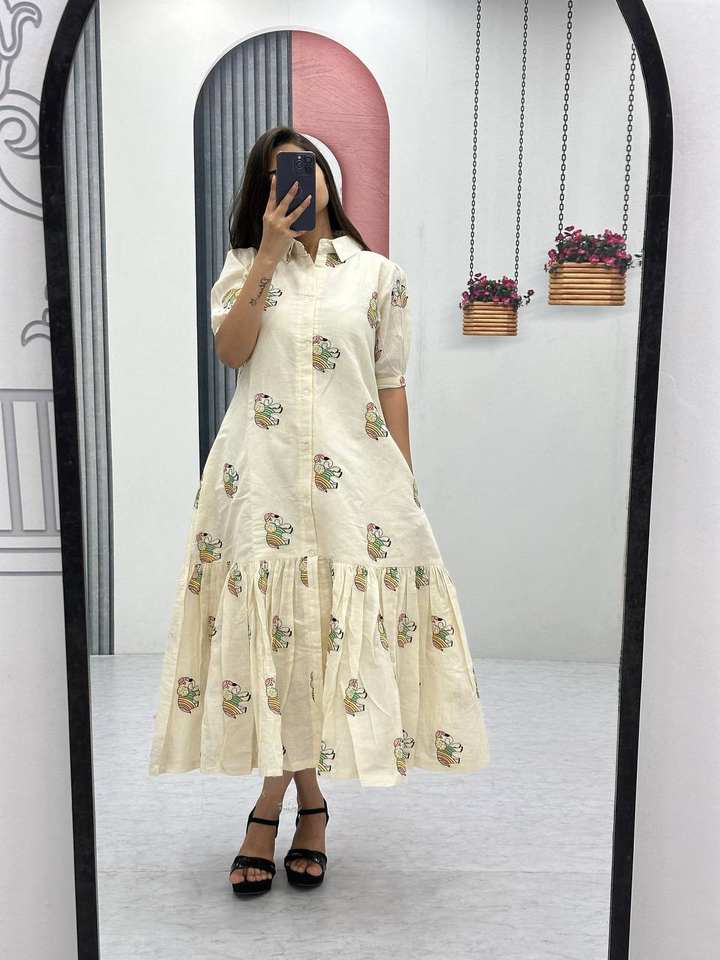 Designer One Piesse White color Printed Ruffle Kurti Or Gown For Girls Or Women