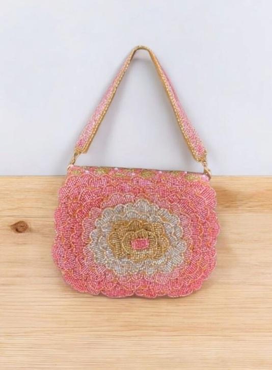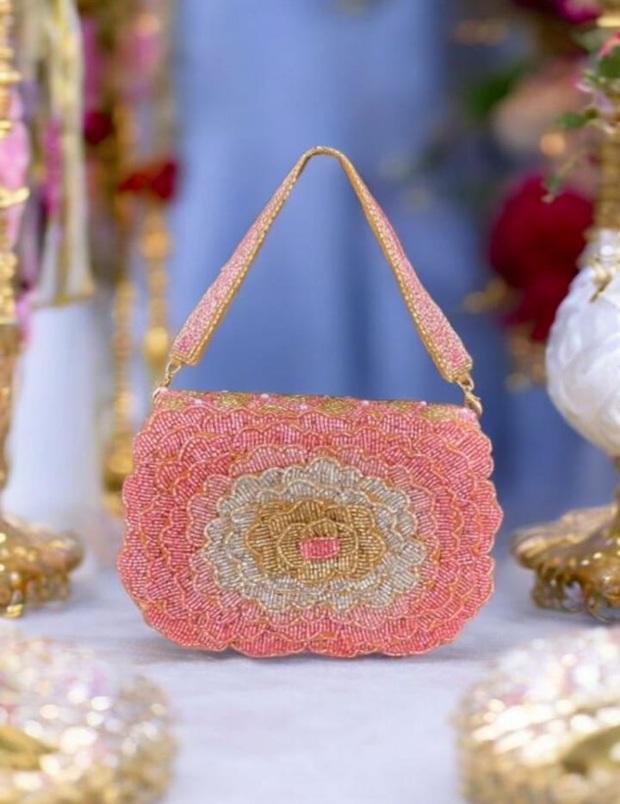 Designer Party Clutch Bag with Double Side Crystal Oval Embroidery & Pearl Tassels Classy Fashion Accessories for Work and Play