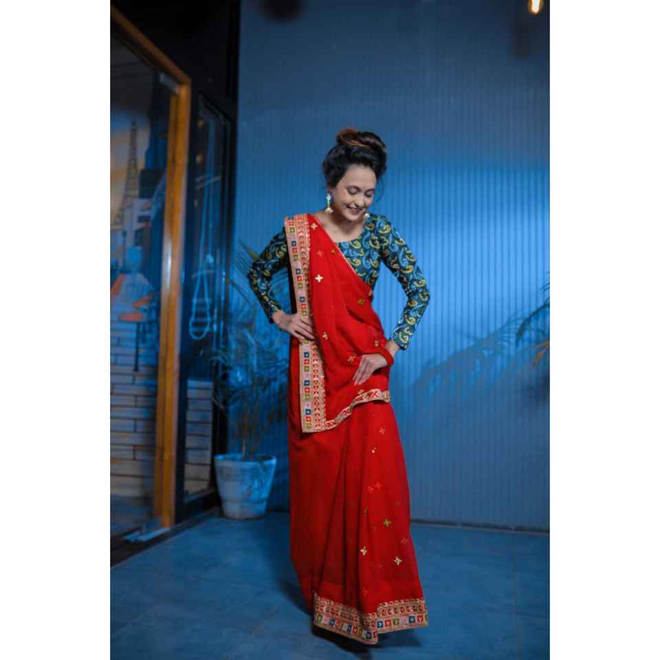 Designer Party Saree with Embroidery and Mirror Work for Club Wear