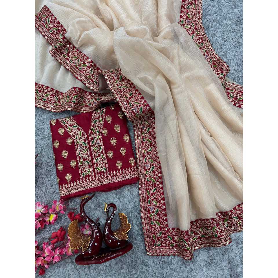 Designer Party Wear Saree with Embroidery Work Lace Border Elegant Prom Dresses