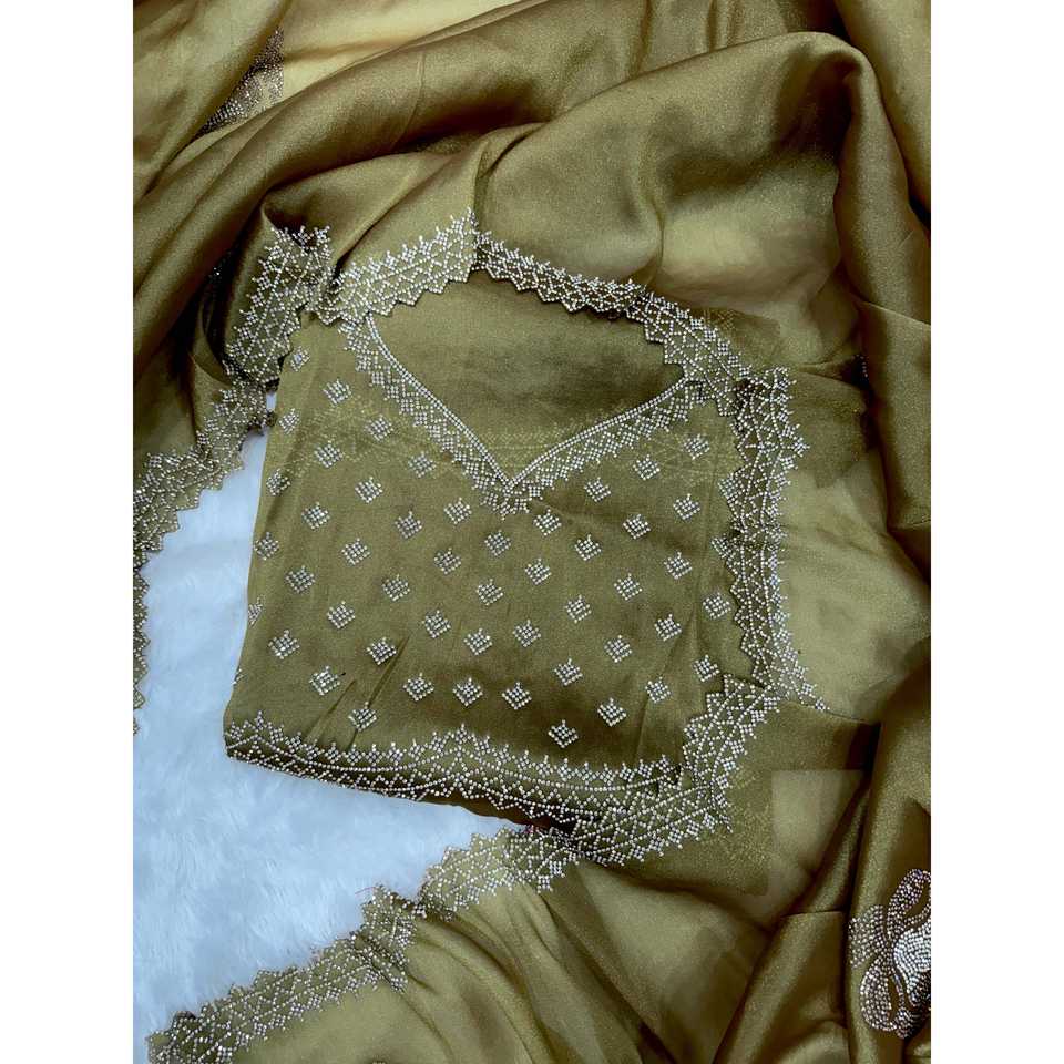 Designer Party Wear Saree with Jarkhan Diamond Work Elegant Dresses