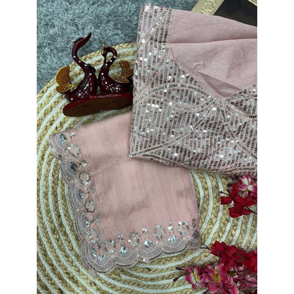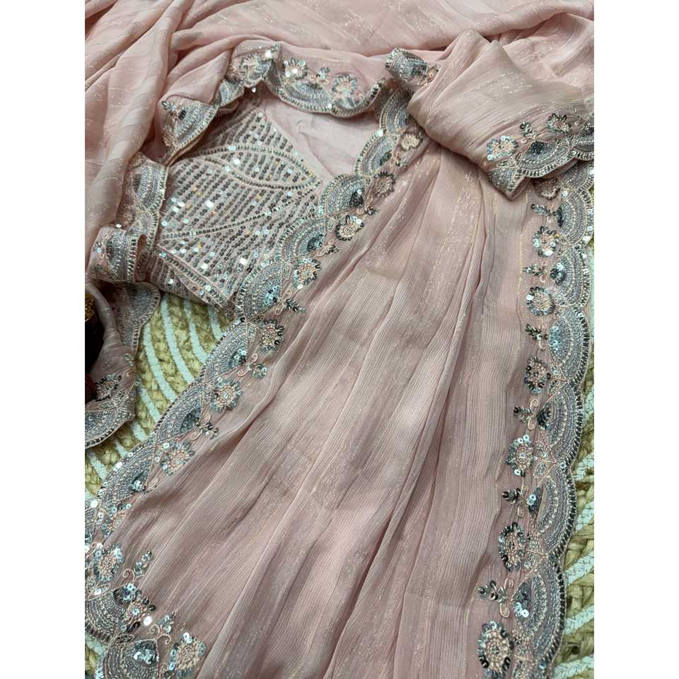 Designer Party Wear Saree with Sequence and Embroidery Work for Club Dress-Up