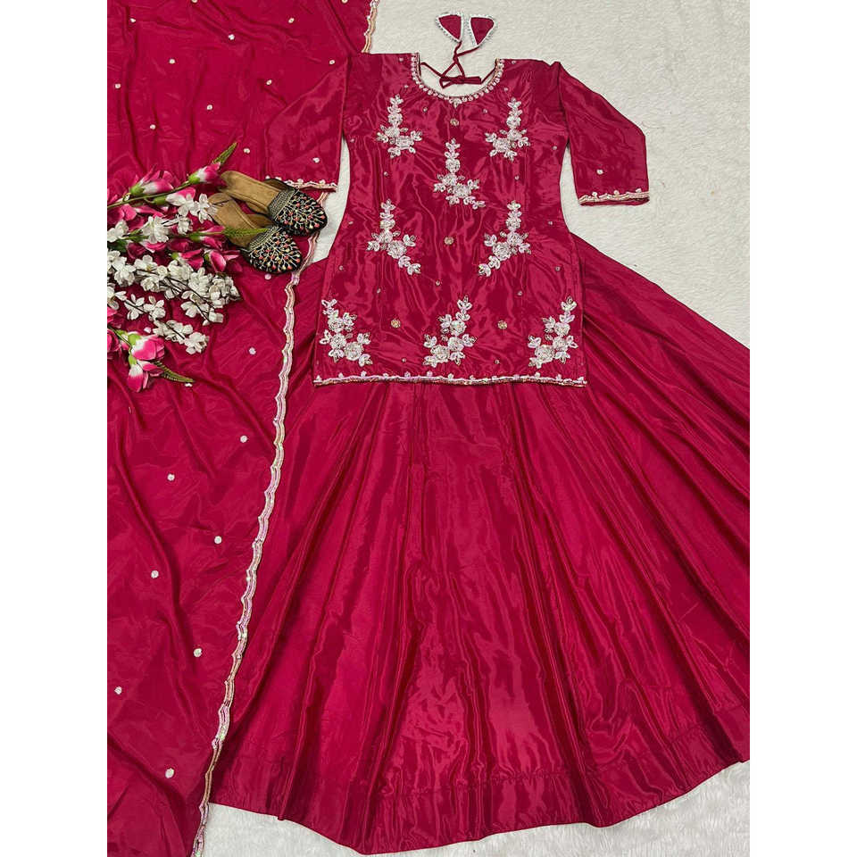 Designer Party Wear Women's Top Lehenga Set with Fancy Dupatta