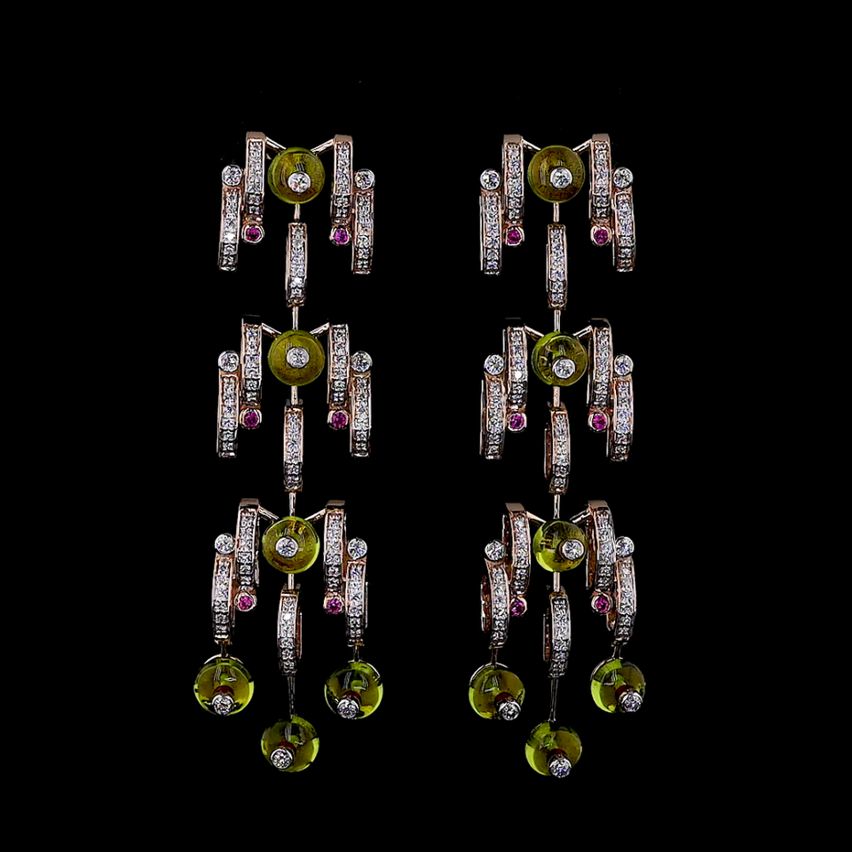 Designer Peridot Earrings with Lab-Created Diamonds for Evening & Cocktail Events
