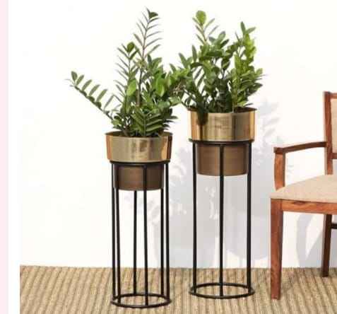 finishing:Gold Plating & Brown on Pots Black Matte on Stands
