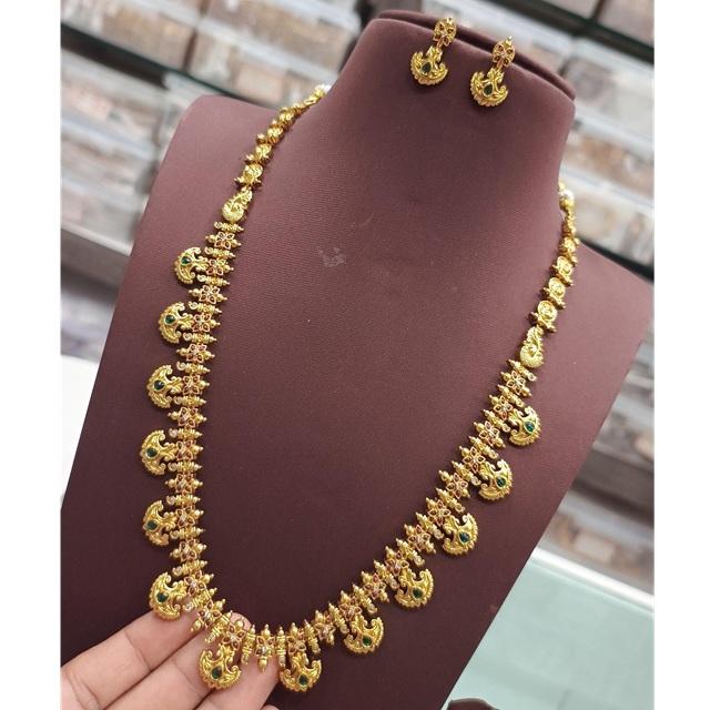 Designer Premium Polish Premium Quality Exclusive Unique Design Gold Plated Long Necklace Set With Earrings For Wedding Wear
