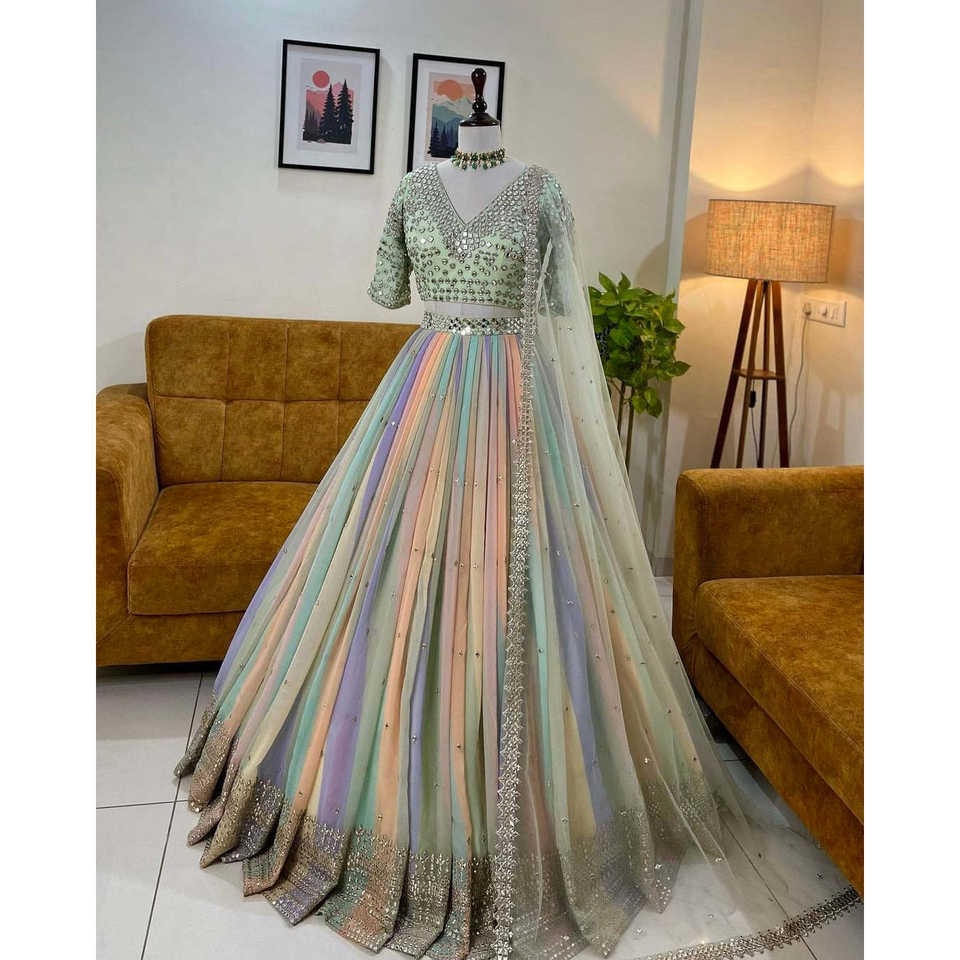 Designer Prom Dresses Elegant Lehenga Choli with Fancy Lace Work for Parties