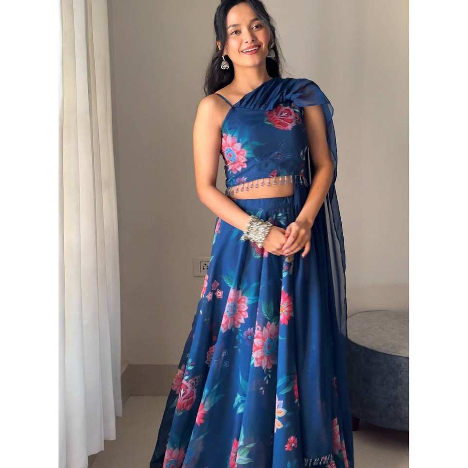 Designer Prom Dresses Elegant Party Wear Lehenga Choli with Fancy Print