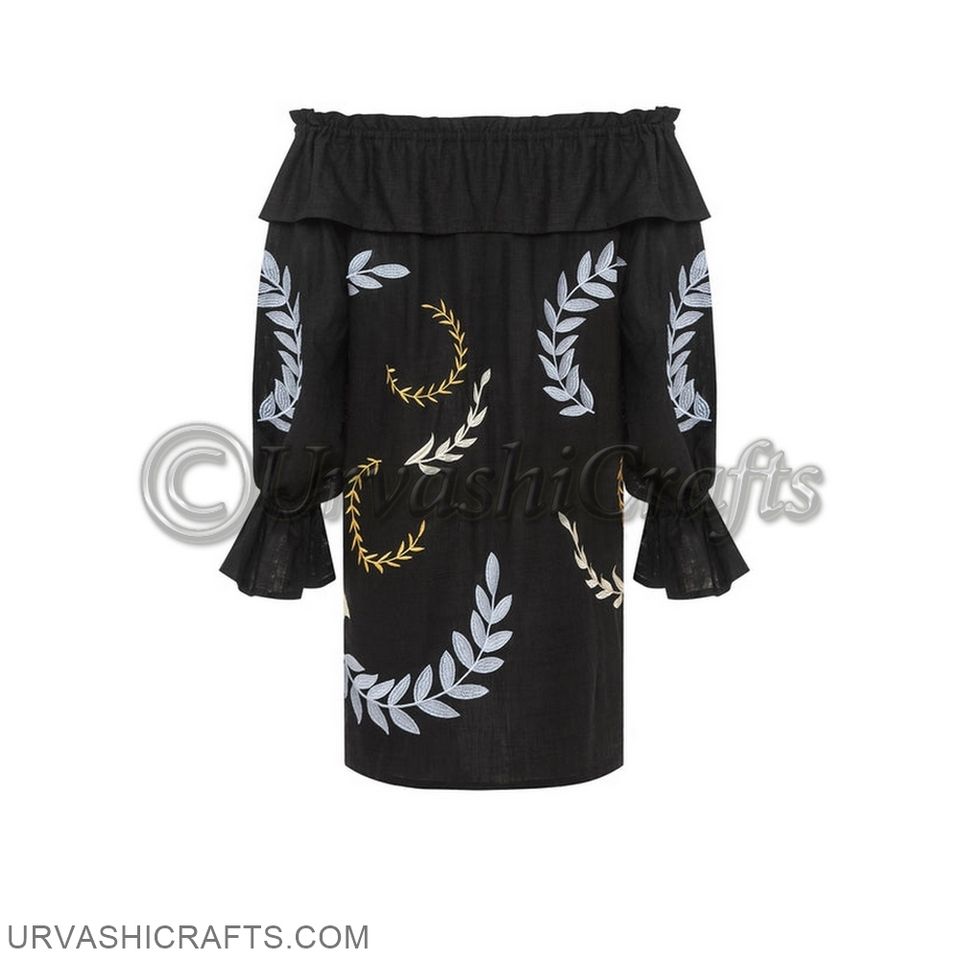 Maxi Red & Black Rose Pattern Linen Buttoned Embroidered Dress