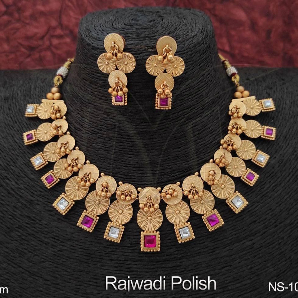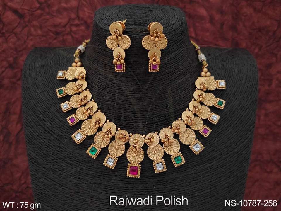 Designer Rajwadi Plated Kemp Jewellery Fancy Design Party Wear Beautiful Kemp Necklace Set