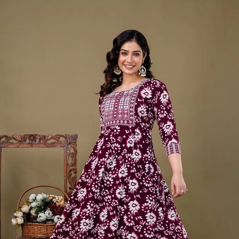 Designer Rayon Cotton Sequence Embroidery Work Beautiful Gown Party Wear Best Price Manufacturing Ethnic Garment Apparelgarment