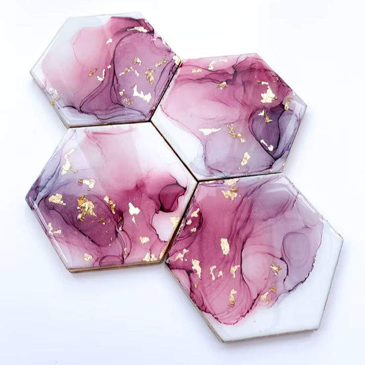 Designer Resin Coaster Set With Unique Color Pattern For Contemporary Interior Table Decoration And Beverage Protection