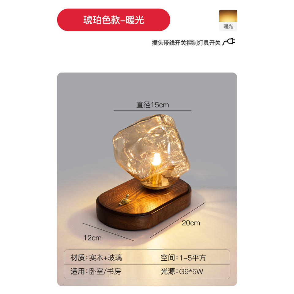 Designer Retro Style Ice Cube Table Lamp Ambient Night Light for Bedroom Living Room Study Decorative Bedside Nightstand Light
