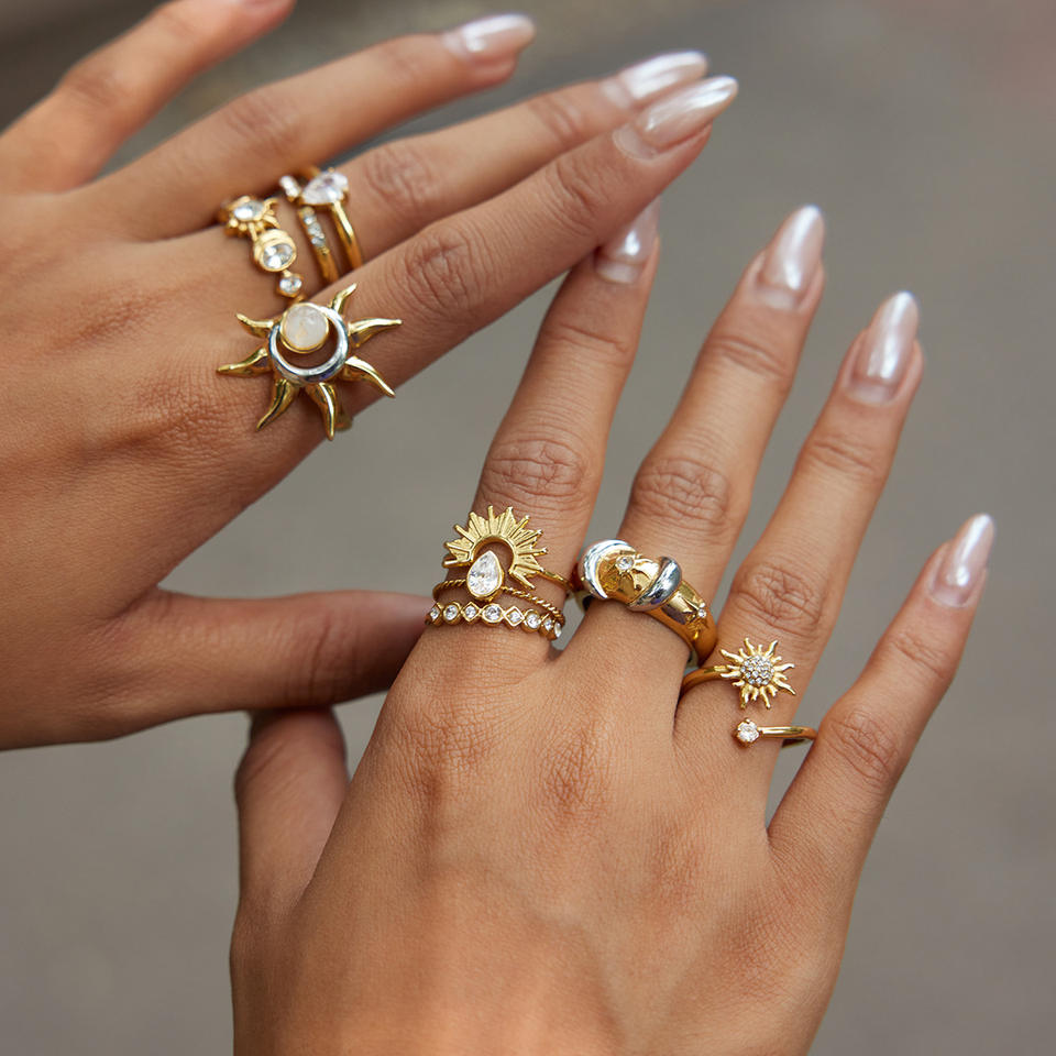Designer Ring Set Gold Tone Sun Moon Star Zircon Women's Fashion Jewelry Gift